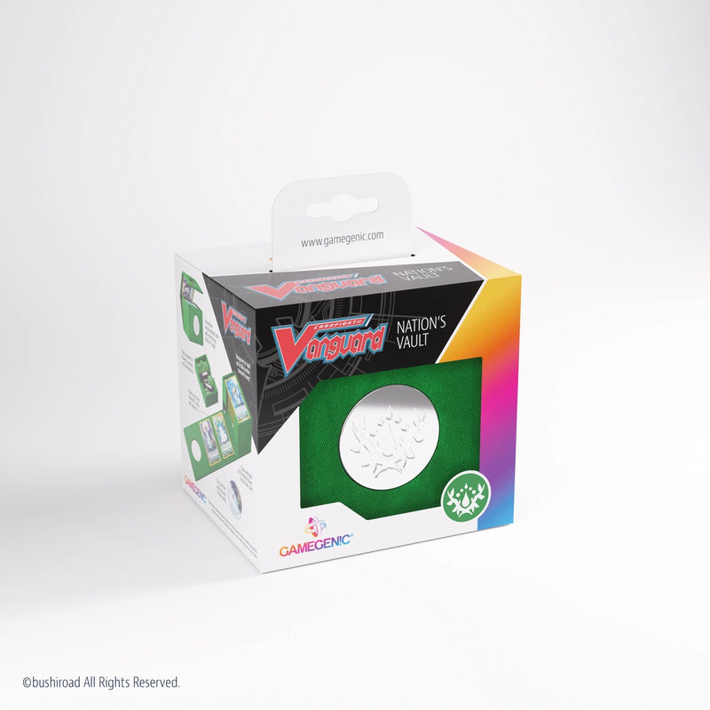 | 商品の特徴 | 61v1g9cT9IL._UF894,1000_QL80_.jpg。Game Genic Nation's Vault Deck Box (Stoicheia - Green。CARDFIGHT VANGUARD GAMEGENIC NATION'S VAULT STOICHEIA DECK。プレミアムデッキホルダー Cardfight!! Vanguard - Nation’s Vault - Stoicheia【サイズ】幅109×高さ103×奥行91mm(パッケージ込み)【素材】Nexofyber surface + microfiber inner lining【印刷】6色【その他】蓋部マグネット仕込外側にNexofyber surface、内側はmicrofiber inner liningを使用。Cardfight Vanguard Nation's Vault: Stoicheia | Accessories。パワーカウンターなどの小物類もまとめて収納できるプレミアムデッキホルダーが登場!マグネット部分には国家アイコンを刻印!L-6 | ||